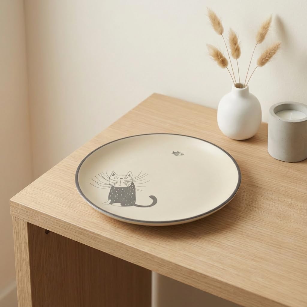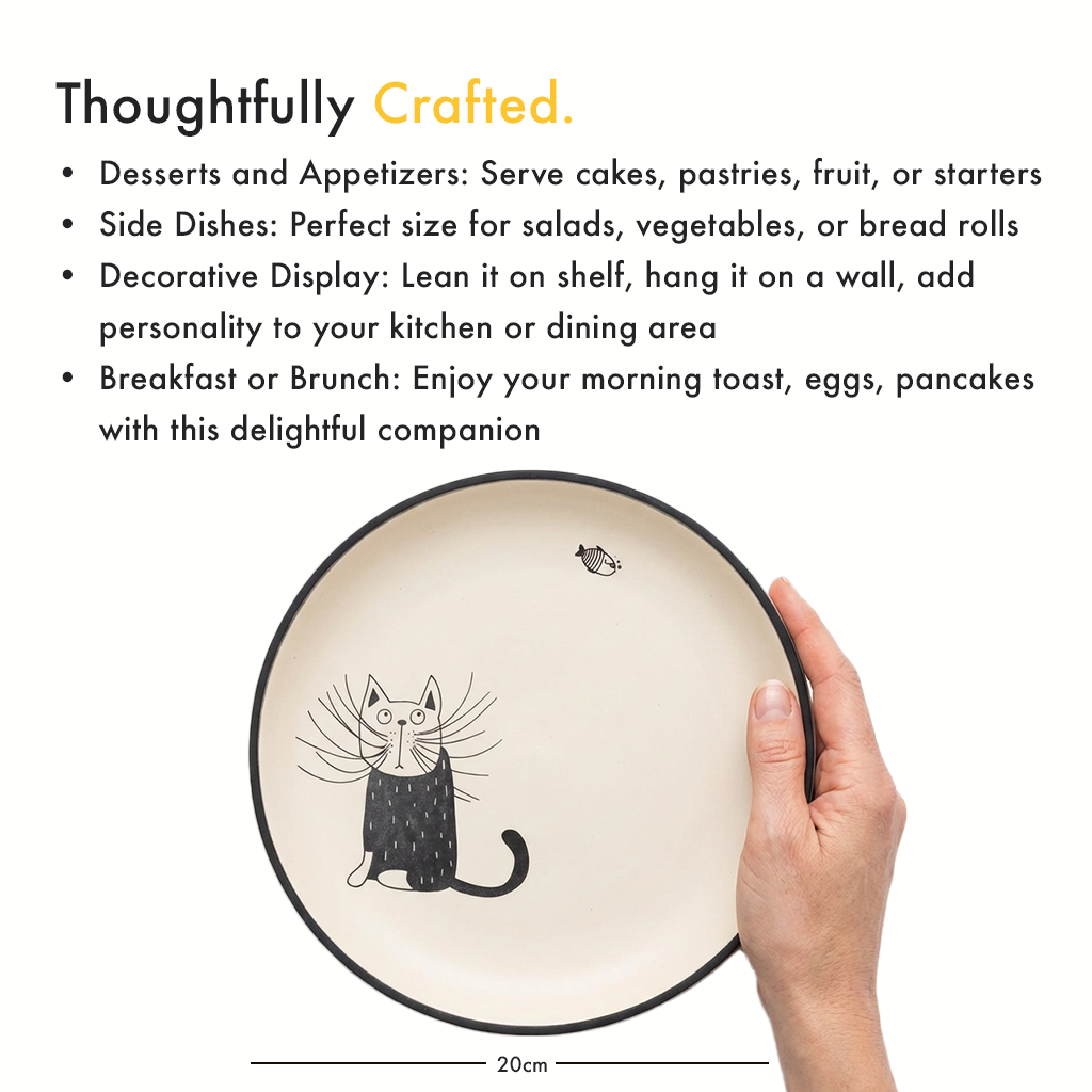 Whether you're a cat enthusiast or simply appreciate unique and handcrafted designs, this durable ceramic plate will bring joy to your meals and decor.
