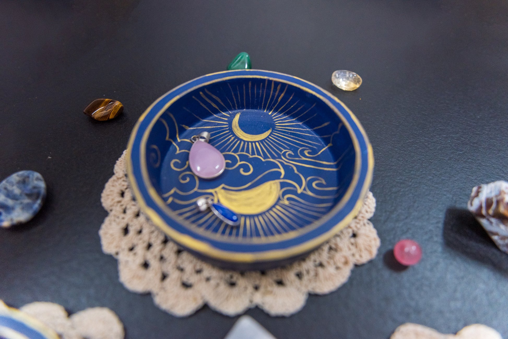 - Altar & Meditation: Holding small crystals, incense cones, or sacred herbs
