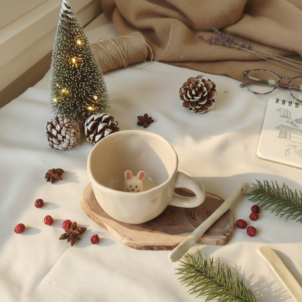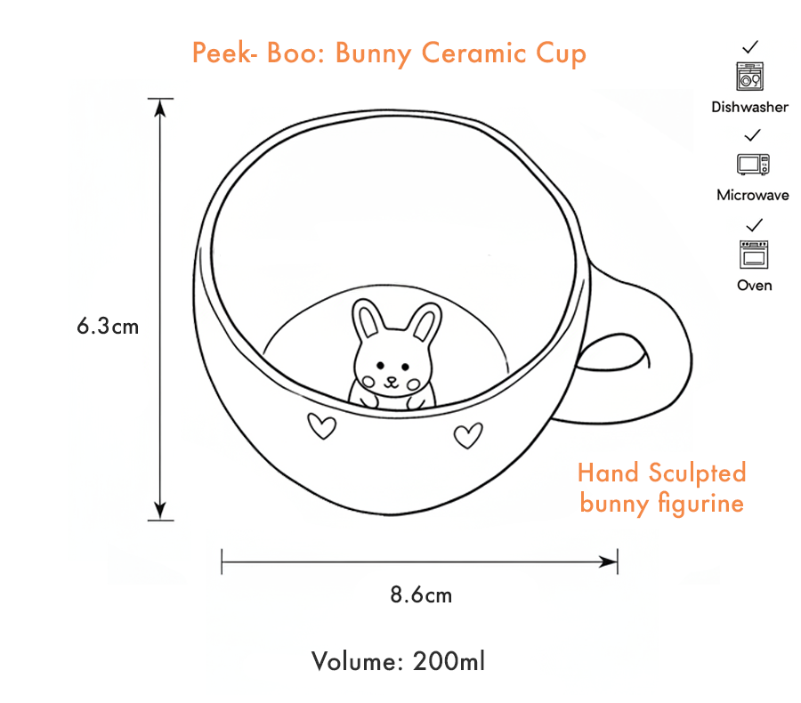 Add a dash of whimsy and warmth to your coffee or tea time with our Peek-a-boo Bunny Ceramic Mug. This adorable mug reveals a tiny bunny at the bottom—making every sip a delightful surprise.