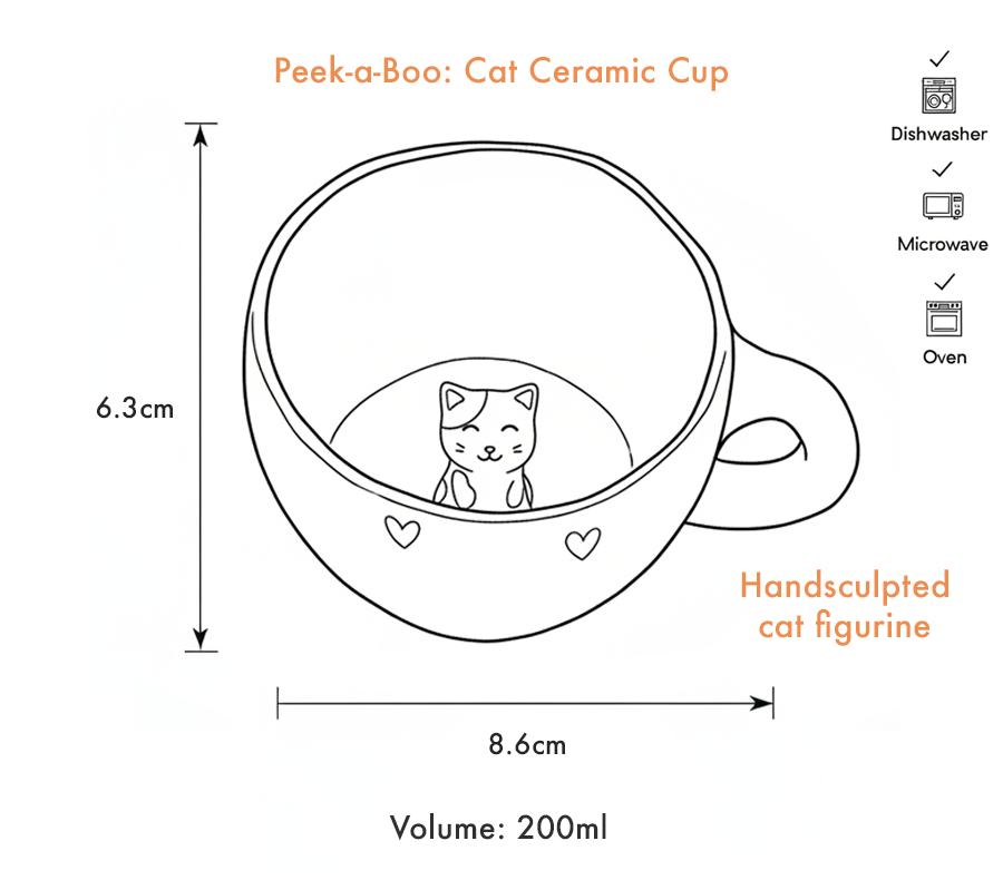 Meet the mug that purrs with personality! This handcrafted ceramic cup hides a little surprise at the bottom — a sleepy cat patiently waiting for your last sip. Perfect for coffee, tea, or just cozy moments of calm, it’s equal parts cute and comforting.